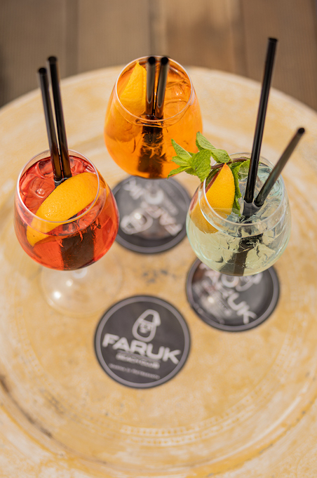 In the unique setting of the Faruk, our guests can discover three different workstations, each with its own unmistakable character and aesthetics. These spaces are designed to offer an absolutely superlative cocktail tasting experience, transforming every sip into a moment of pure delight.